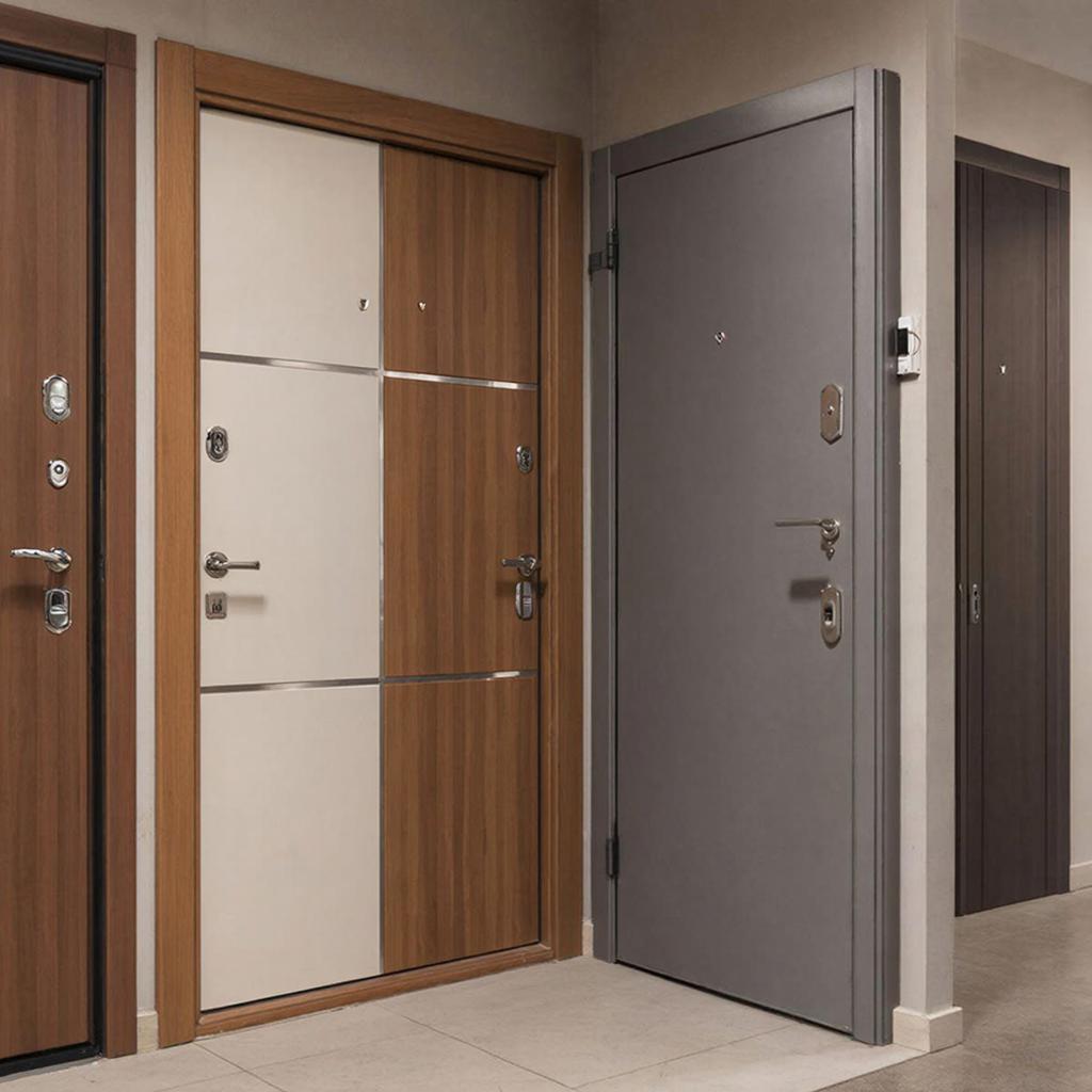 | МДФ-панели (ламинированные, шпонированные, крашеные) | Древесноволокнистые плиты различной толщины, покрытые пленкой ПВХ, шпоном натурального дерева или эмалью. | Эстетичный внешний вид, имитация натурального дерева, широкий выбор цветов и фрезеровок. Дополнительная звуко- и теплоизоляция. | Менее устойчивы к влаге и прямым солнечным лучам (кроме влагостойких МДФ и специальных пленок). Могут быть повреждены механически. | Идеальны для квартирных дверей, а также для частных домов с козырьком или тамбуром. |